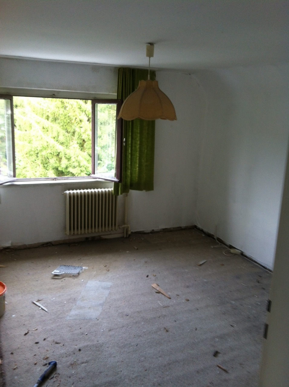 23.07.2013 22:53Florian hat heute das zweite Stockwerk ausgeräumt, alle Teppiche und PVC-Böden rausgerissen und unser provisorisches Schlafzimmer frisch gestrichen.